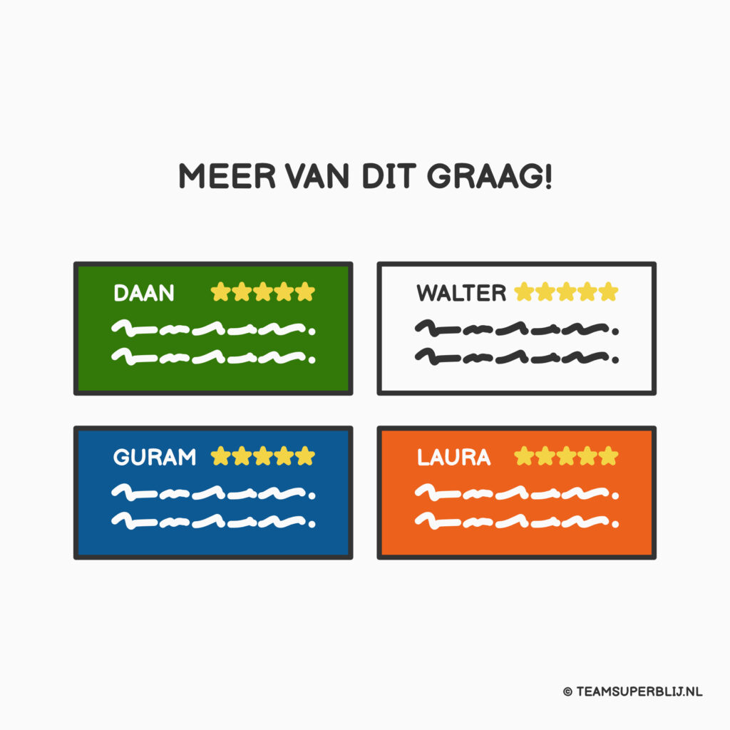 We werken aan iets heel gaafs dat straks zorgt voor prachtige reviews van jullie klanten!